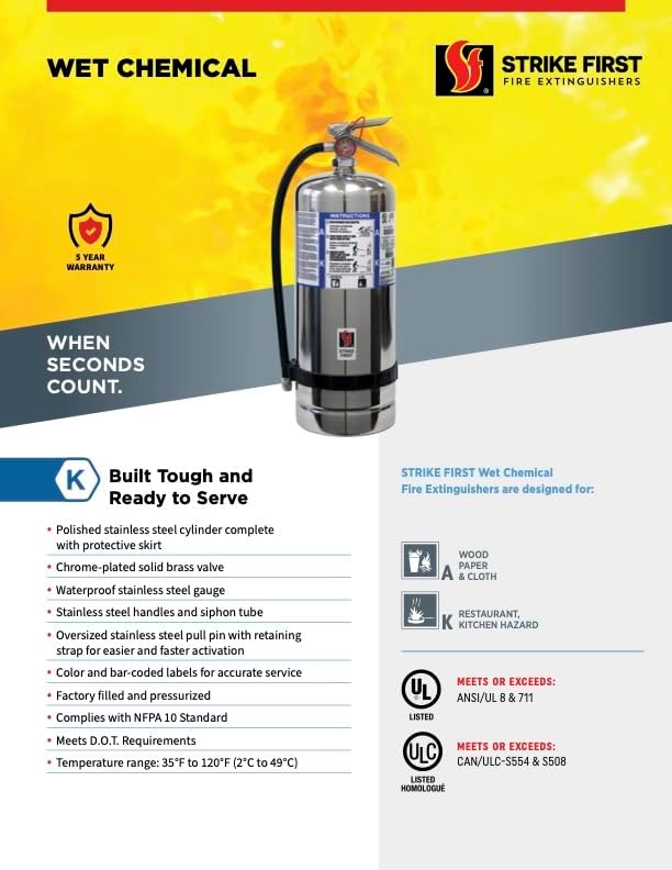 Strike First 6L Wet Chemical Fire Extinguisher (Class K) | UL Certified for Commercial Kitchen Grease Fires, Restaurant Grade, SF-6LK